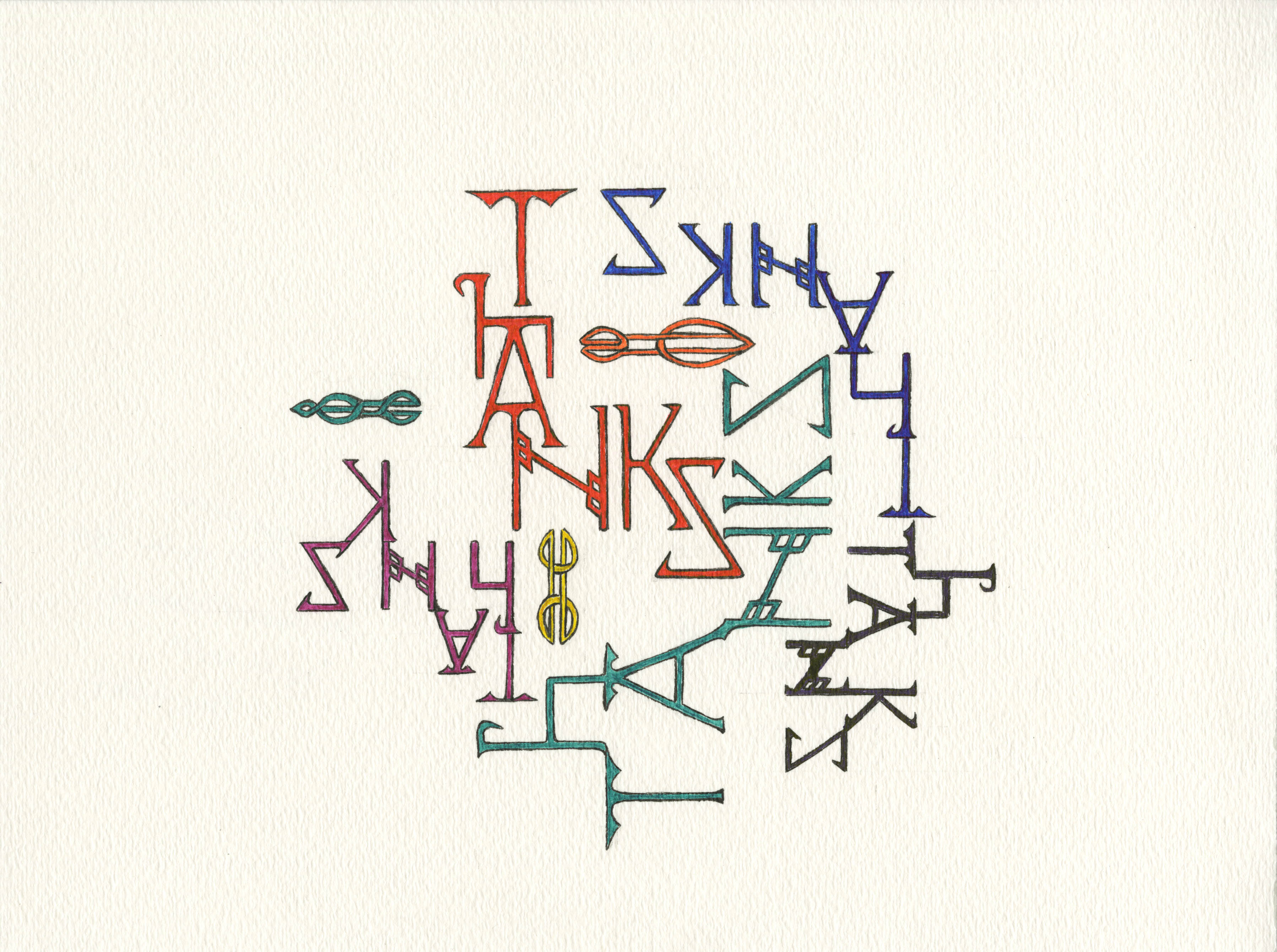 Many THANKS, using script interpreted from the “Book of Kells” drawn by Meredith Eliassen, 2015.