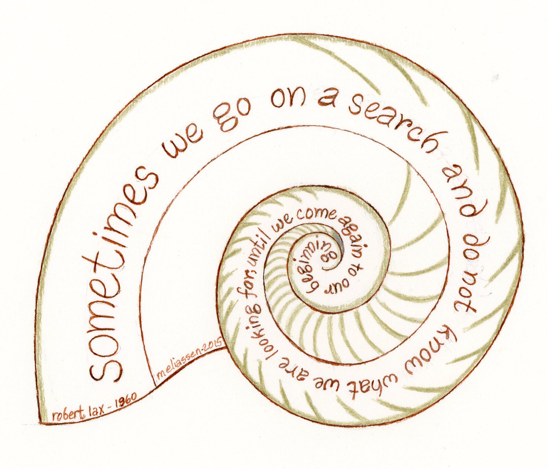 Thanks for bringing poet Robert Lax (1915-2000) back into my consciousness. If the nautilus shell symbolizes growth from a center, then this thought from Lax’s Circus of the Sun (1960) gently reminds of the continued need to return our core at different life stages.
