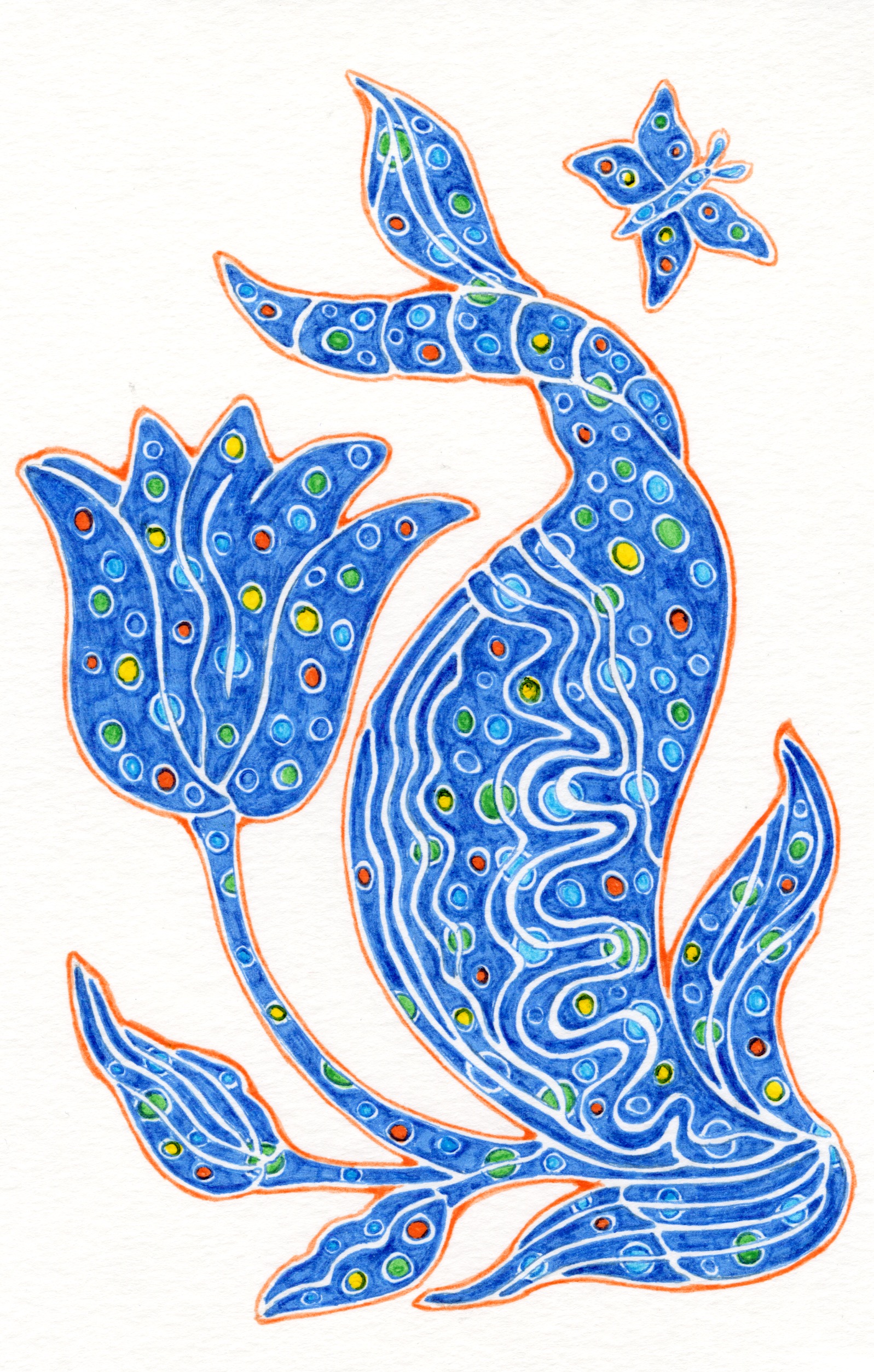 Okay, so Merry Viv stopped by with a challenge. She told me that my friends have wondered where I am… I explained that I have been working on a book project all summer, and well, I have a day job. Anyway, I whipped up a night tulip real quick. Merry Viv was not satisfied and told me that she has two tall friends that she has convinced to do some crazy time vortex experiment on Friday the 13th. They must be brave souls to do this… She told me that they will visit me as the moon grows fuller and I will be able to fit them on a sheet of paper. I leave you, my friends with this, and I will have my pens at the ready, because she told me that if I do not take advantage of this she will make me look into her time vortex machine and I will have to do some bizarre yoga-like to pose to gain access. Stay tuned.