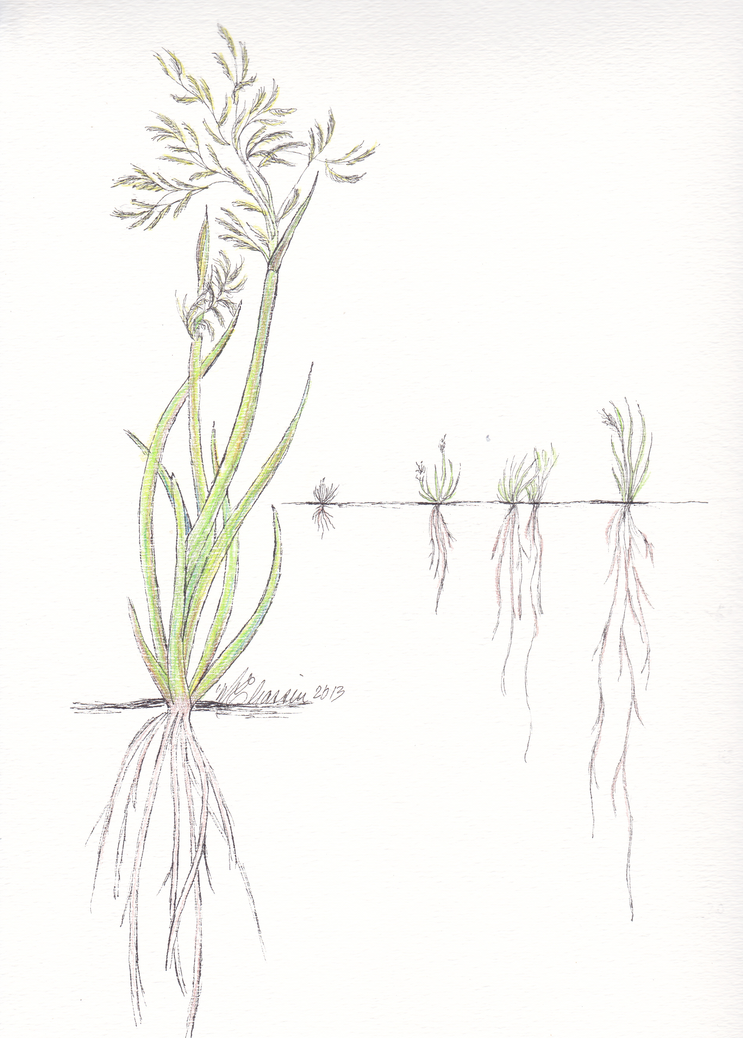 Coast Miwok ate tule roots, but other plant parts were employed in constructing dwellings, granaries, and boats. The strength of tule fibers, grass-like sedges of the genus Scirpus growing along rivers and by wetlands, was identified for manufacturing water-resistant products. Sedge beds along streams under the shade of oak trees were carefully worked by basket makers who used a digging stick to expose the rhizomes for select the best rhysomes for baskets. Tule was processed as an absorbent material in infant diapers and sanitary napkins that were burned after use.