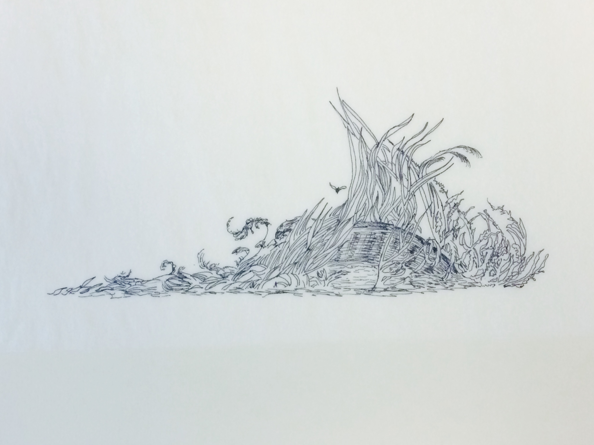 Drawing of a basket bottom by Meredith Eliassen