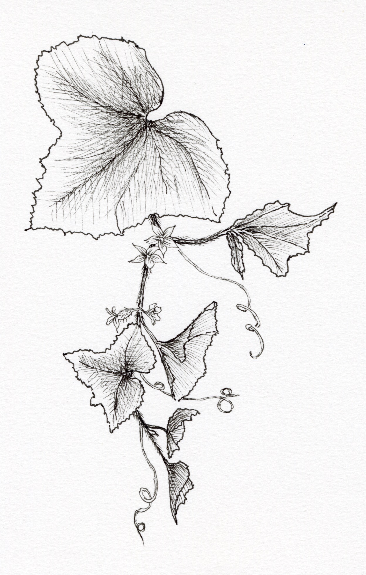 In a quiet moment… a drawing of some neighborhood yerba buena by Meredith Eliassen, 2018.